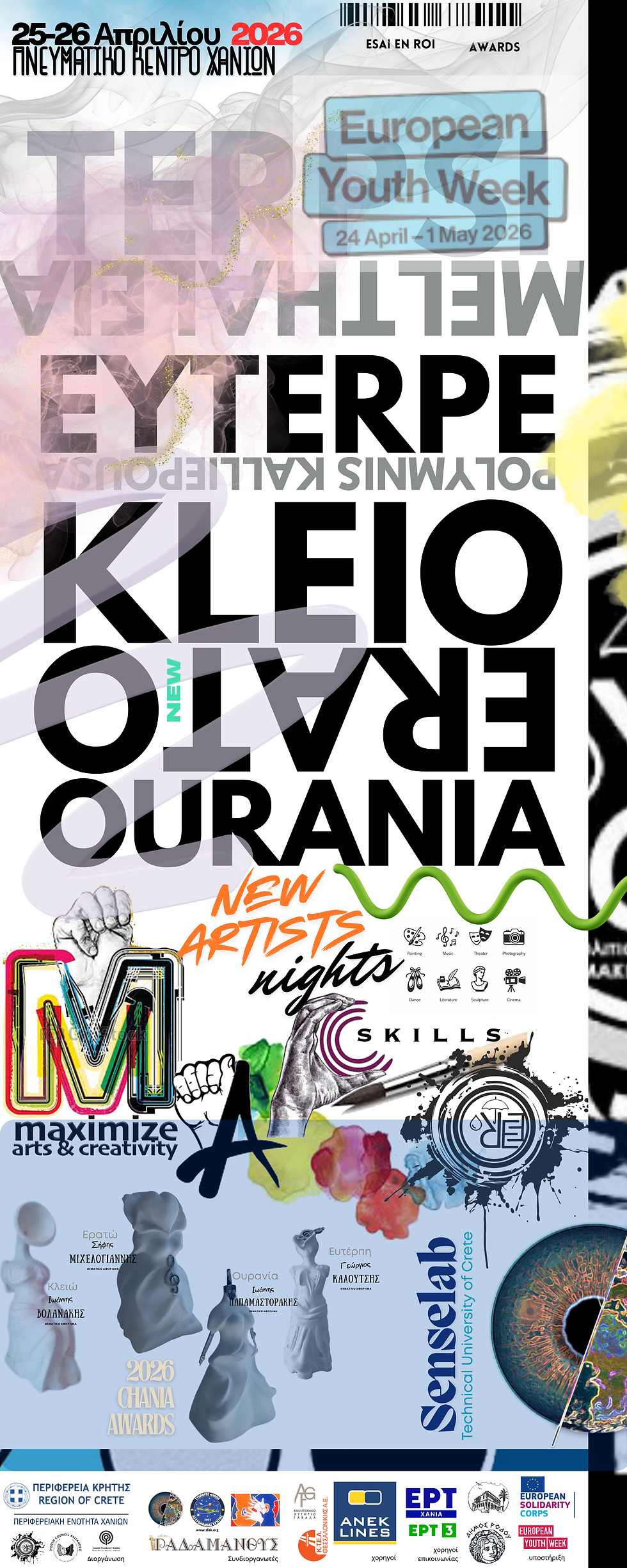 Στο πλαίσιο της Ευρωπαϊκής Εβδομάδας Νεολαίας, θα πραγματοποιηθούν στα Χανιά οι Δράσεις Καλλιτεχνικής Παιδείας «Μουσών Καινοπραγία», ένα διήμερο αφιερωμένο στην τέχνη, τη δημιουργικότητα και τη συμπερίληψη.